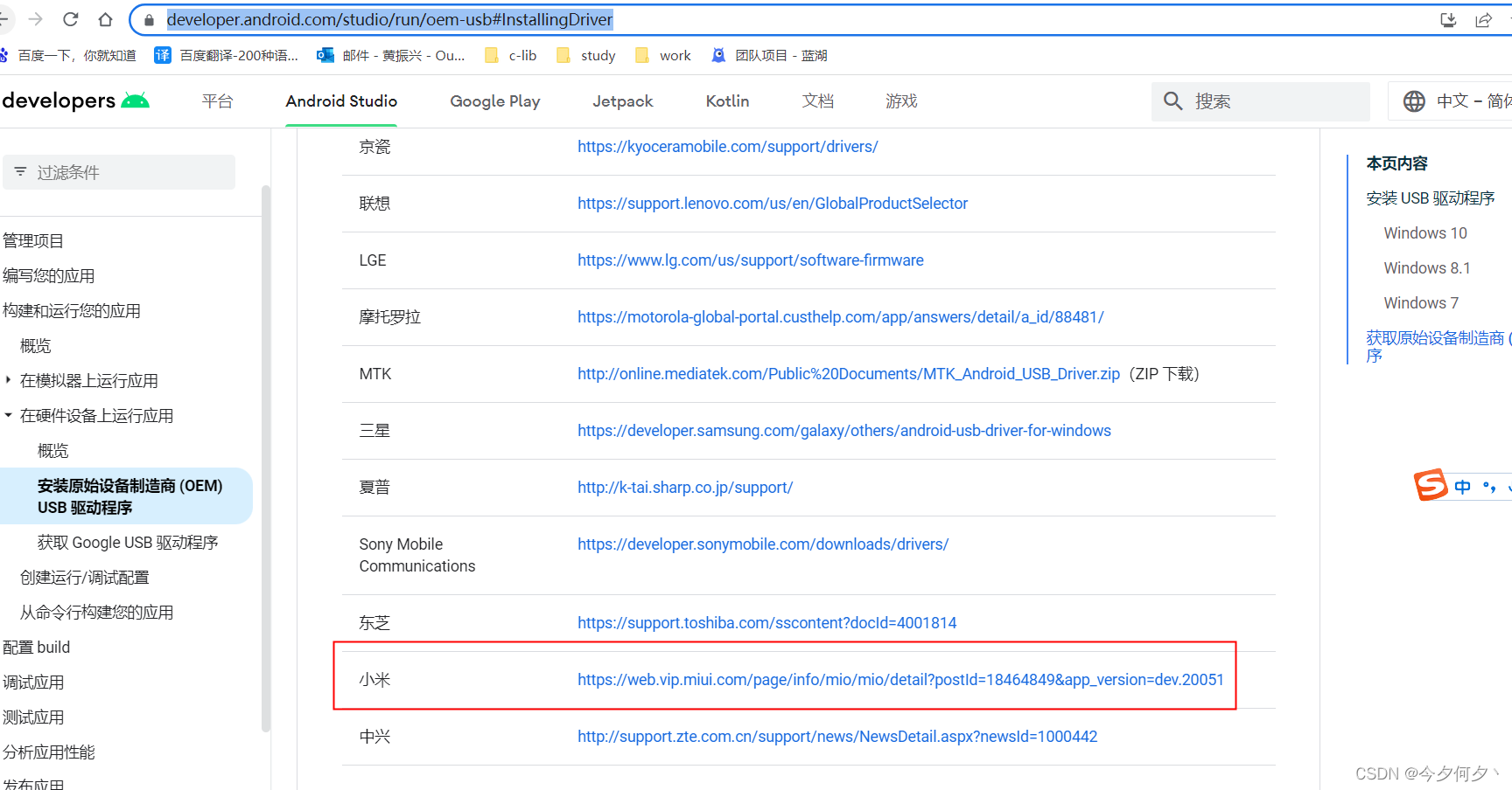 1.下载驱动:https://developer.android.com/studio/run/oem-usb#InstallingDriver