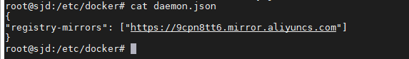 "registry-mirrors": ["https://9cpn8tt6.mirror.aliyuncs.com"]