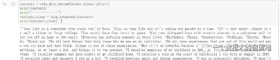 此次Demo实验选取部分Yelp电商评论中的文本部分,其中评论有真有假,分别对真实评论和虚假评论进行主题抽取。其中表一展示的是一条原始的评论数据集和对应的清洗干净的数据集。