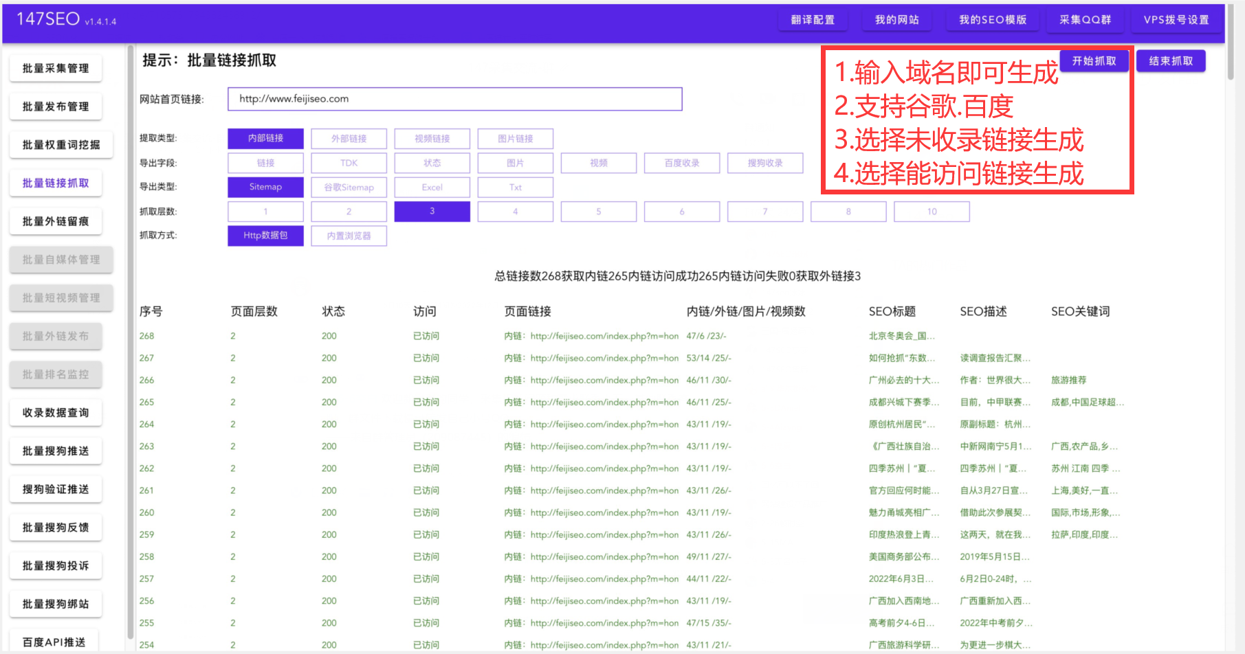 假如你的网站更有利于搜索引擎优化,效果将是事半功倍。因而,我们必须做好网页设计。批量导入生成sitemap地图的工具一个设计良好的网页不只能进步蜘蛛的匍匐效率,还能改善用户体验。