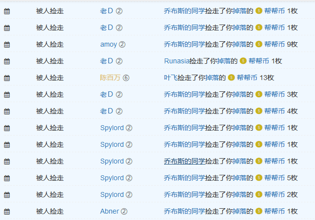为了平衡社区成员的贡献和索取,一起帮引入了帮帮币。当用户积分(帮帮点)达到一定数额之后,就会“掉落”一定数量的“帮帮币”。为了增加趣味性,帮帮币“掉落”之后所有用户都可以“捡取”,谁先捡到归谁。