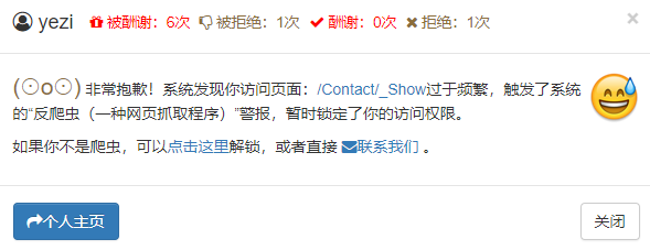 此外,为了防止误判(确实有用户手快),我们还应该给用户一个“解锁”的功能:通过输入验证码来确定不是爬虫。