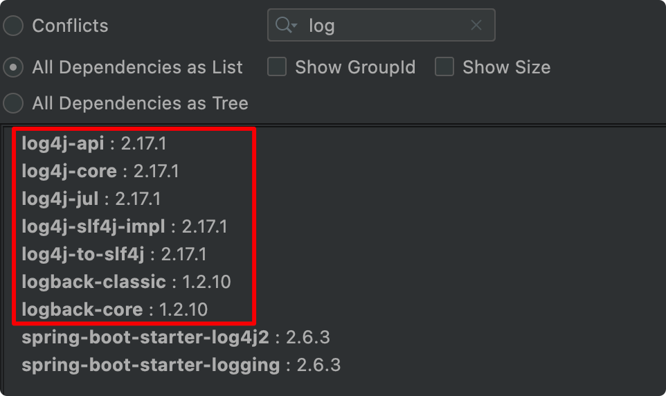 Spring Boot 2.4.x 及以下的版本线不受支持,只需要修改 Log4j2 的版本号即可: