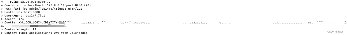 curl http://localhost:8080/xxl-job-admin/jobinfo/trigger --data-raw 'id=任务ID&executorParam=任务参数' -H 'Cookie: XXL_JOB_LOGIN_IDENTITY=上一步操作返回的登录信息' -v