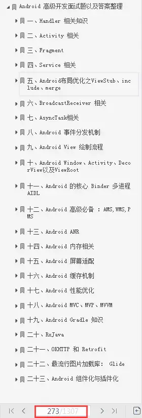 后面除了跟视频学习,就是一直在刷这套1307页Android 面试全套真题解析。