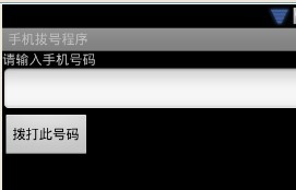 在AndroidManifest.xml中要说明<uses-permission android:name="android.permission.CALL_PHONE"></uses-permission><?xml version="1.0" encoding="utf-8"?> <manifest xmlns:android="http://schemas.android.com/apk/res/android" package="com.drip.phone" android:versionCode="1" android:versionName="1.0"> <uses-sdk android:minSdkVersion="8" /> <uses-permission android:name="android.permission.CALL_PHONE"></uses-permission> <application android:icon="@drawable/icon" android:label="@string/app_name"> <activity android:name=".PhoneActivity" android:label="@string/app_name"> <intent-filter> <action android:name="android.intent.action.MAIN" /> <category android:name="android.intent.category.LAUNCHER" /> </intent-filter> </activity> </application> </manifest>一切就绪,就等东风了。
