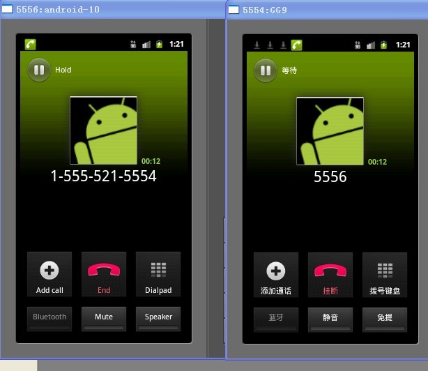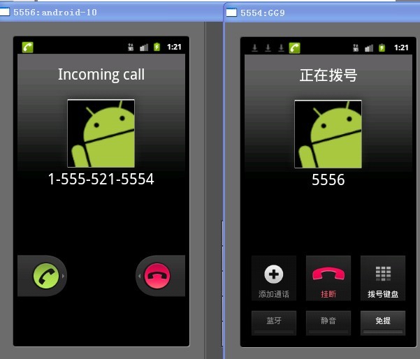 启动后,就可以测试了,模拟器的号码即为“5556”四位数