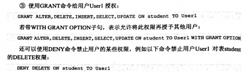 格式:GRANT 权限 ON 对象 TO 用户 (WITH GRANT OPTION)