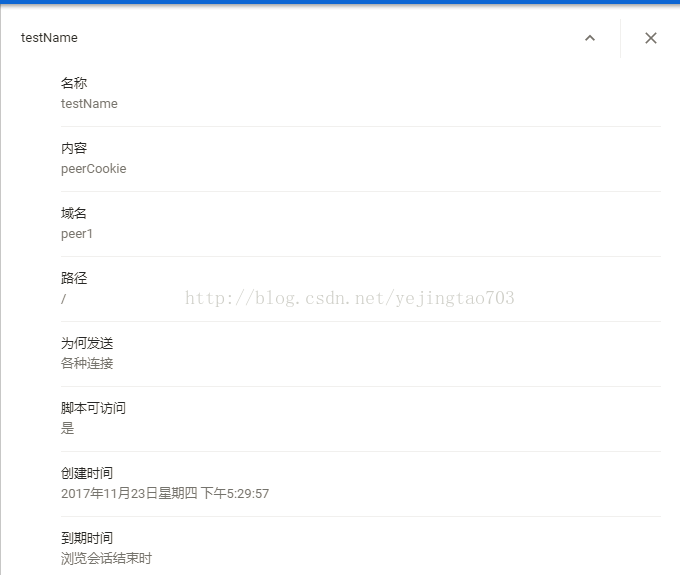 打开箭头可以看到详细的cookie信息,cookie的属性有我们代码中显式设置的,也有隐式默认的: