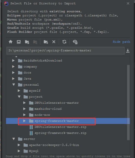 由于github上的spring源码下载很缓慢,所以改为使用了码云的git:https://gitee.com/mirrors/Spring-Framework.git