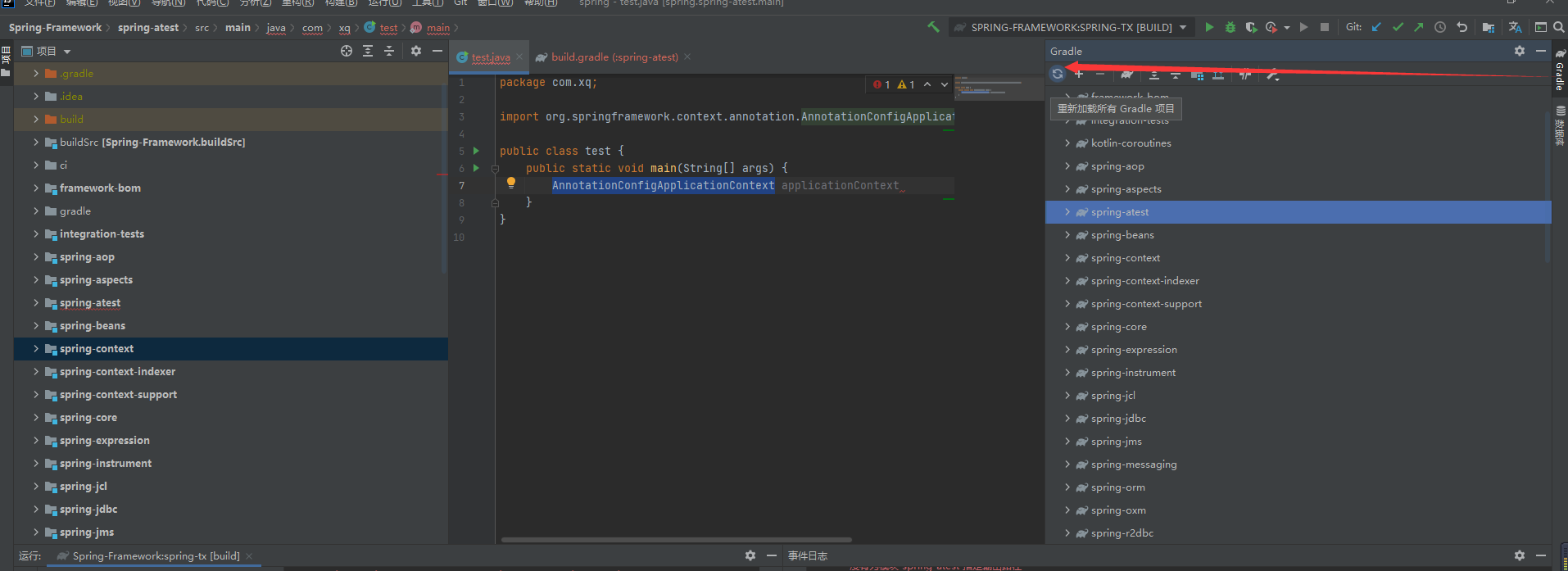 以上就是迷人母鸡最近收集整理的关于一、spring源码构建与导入一、下载spring源码二、修改配置文件三、编译并导入idea四、测试是否成功问题的全部内容,更多相关一、spring源码构建与导入一、下载spring源码二、修改配置文件三、编译并导入idea四、测试是否成功问题内容请搜索靠谱客的其他文章。