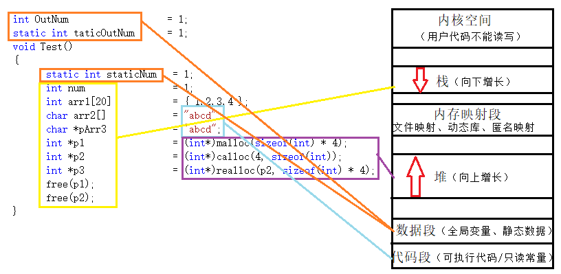 (3)数据段(静态区)(static):存放全局变量、静态数据。程序结束后由系统释放。