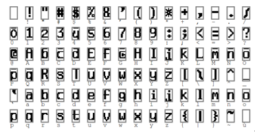 F6层是全连接层。F6层有84个节点,对应于一个7x12的比特图,-1表示白色,1表示黑色,这样每个符号的比特图的黑白色就对应于一个编码。该层的训练参数和连接数是(120 + 1)x84=10164. 比特图的样式见Figure 12,连接方式见Figure 13.