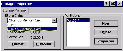 这段代码没什么问题,可能大家比较关心的是"DSK2:"这个参数的来源。或是说,我如何确定这个参数。很多朋友可能会错认为,当我们SD卡插入到设备中,在"我的设备"会出现"Storage Card"分区,那么CreateFile的第一个形参就应该是它。但实际上这样是错误的,传入的形参并不是分区名,而应该是驱动名。而这个驱动名的确认,可以通过"控制面板"的"存储器"确认,如图: