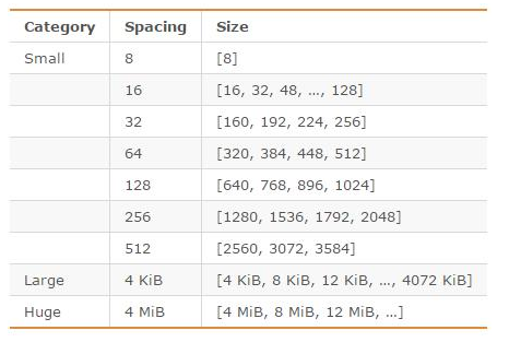 jemalloc划分的内存单元如下图所示: