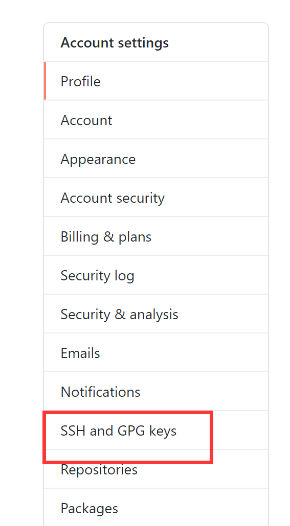6.左侧找到SSH&GPG keys。