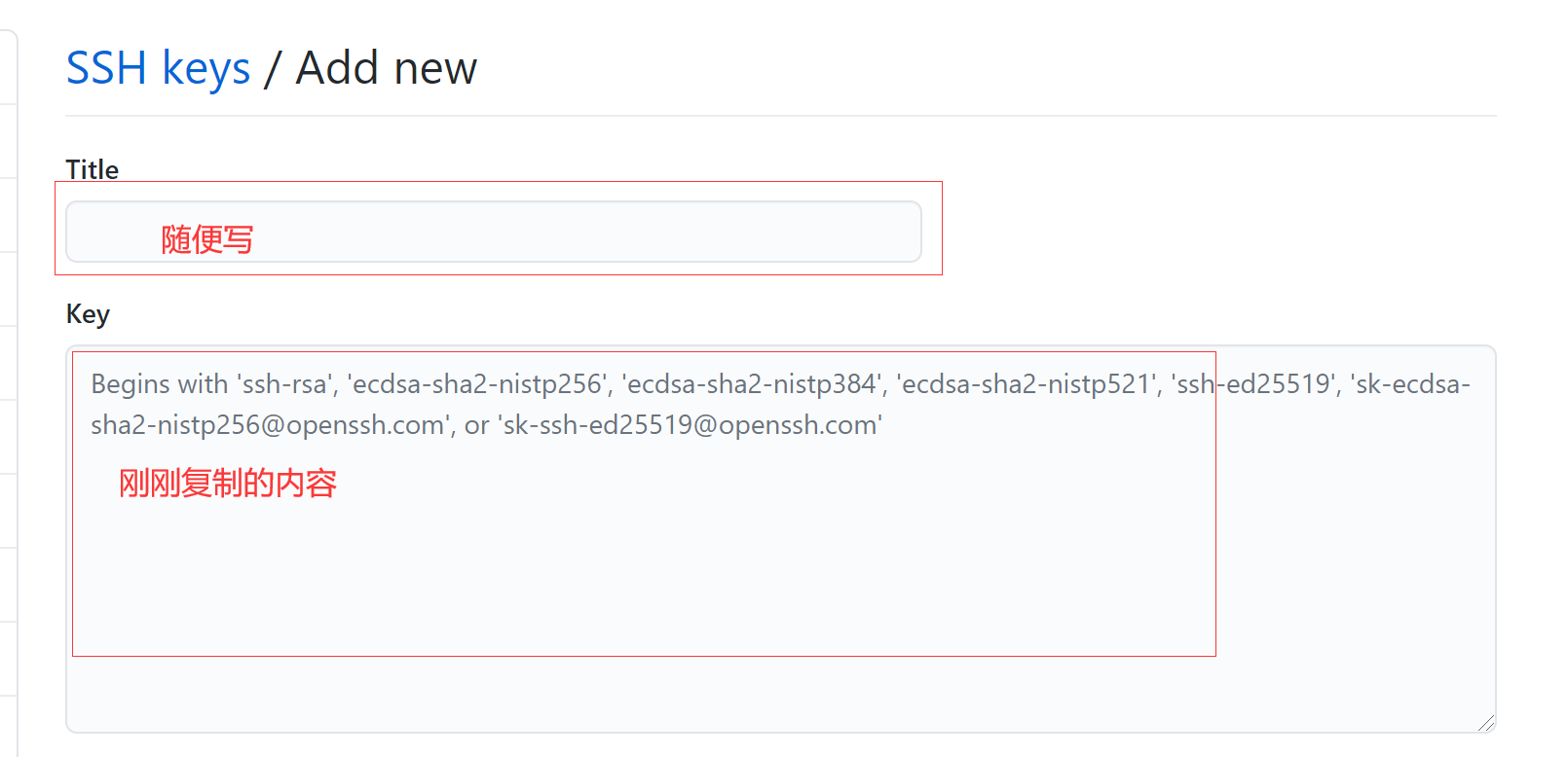 7.title可以随便写,将刚刚复制的内容粘贴到key中。
