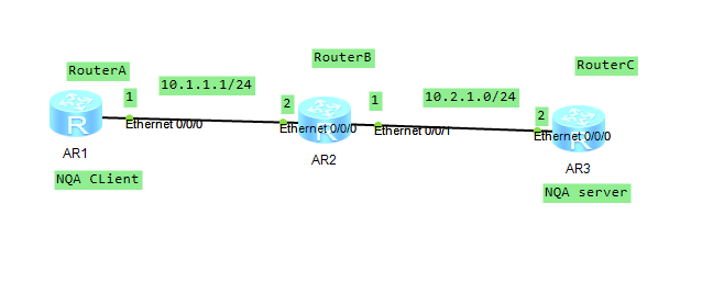 1.RouterA作为NQA客户端,RouterC作为NQA服务器端。