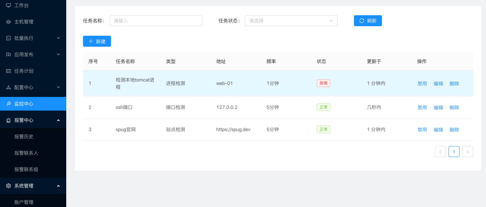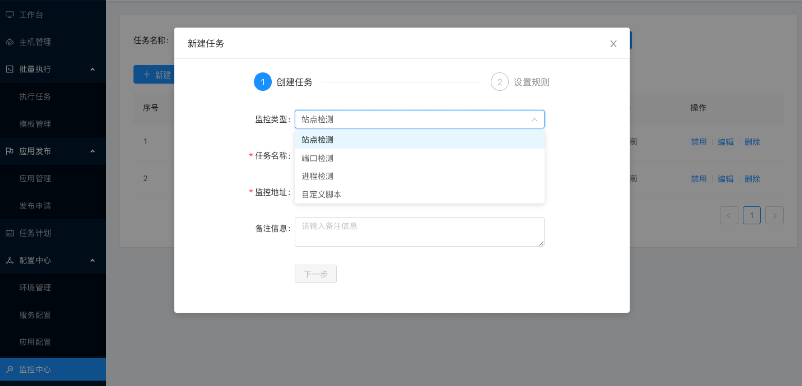- 监控中心: 支持站点、端口、进程、自定义等监控