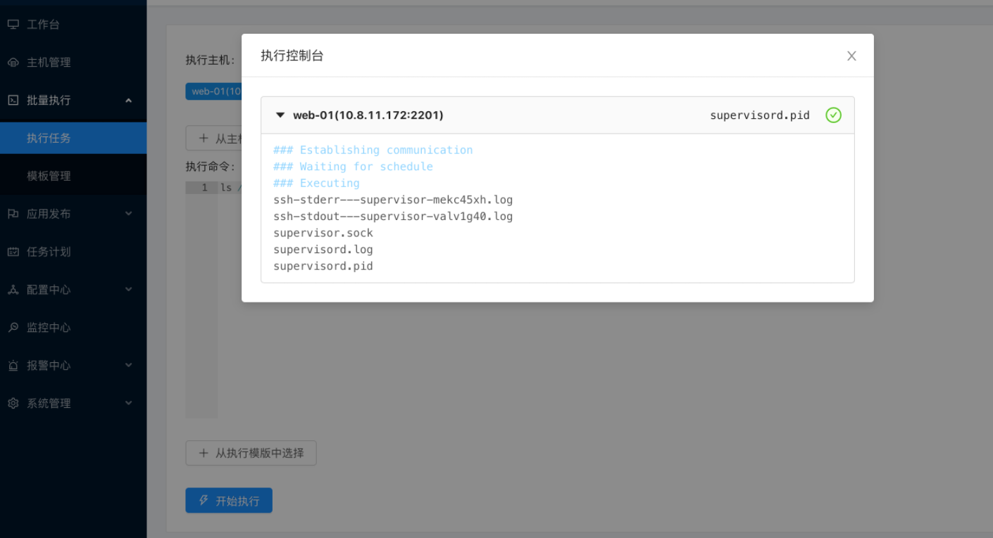 - 批量执行: 主机命令在线批量执行