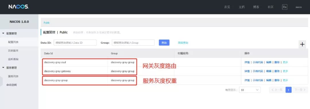 注意:网关灰度路由和服务灰度权重功能会叠加,为了不影响演示效果,请先清除网关灰度路由的规则(在Nacos上删除对应的两条配置即可)。