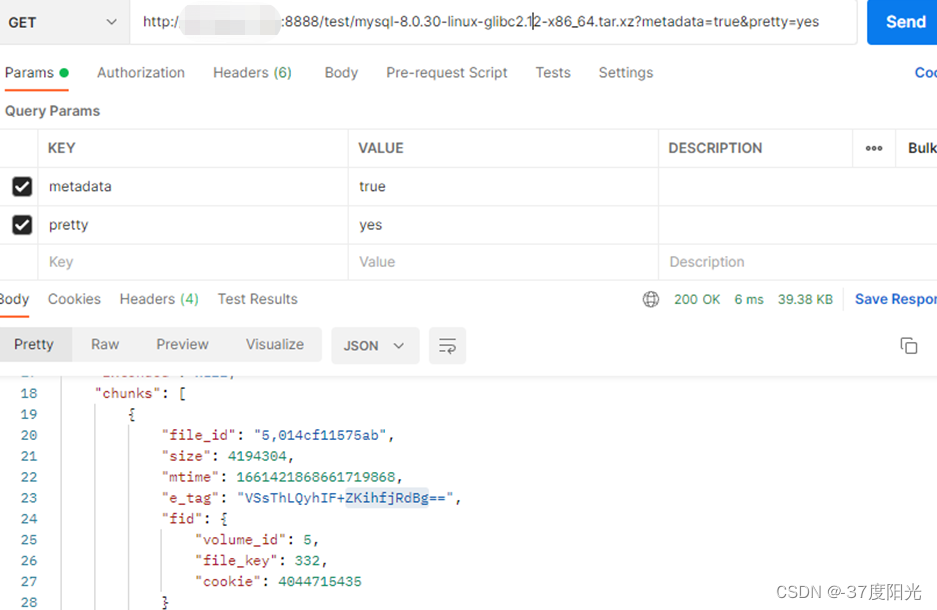 filer模式查看大文件的chunks,可以看到分片的具体信息: