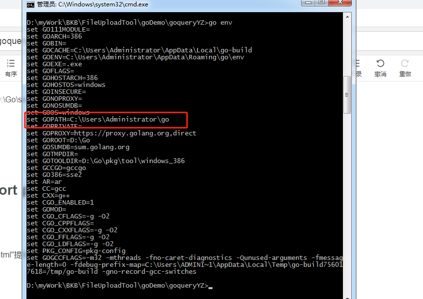 第三步:如何了解gopath目录在cmd命令行输入 go env