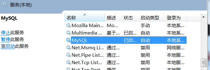 8.net start mysql 启动mysql服务,net stop mysql 停止mysql服务