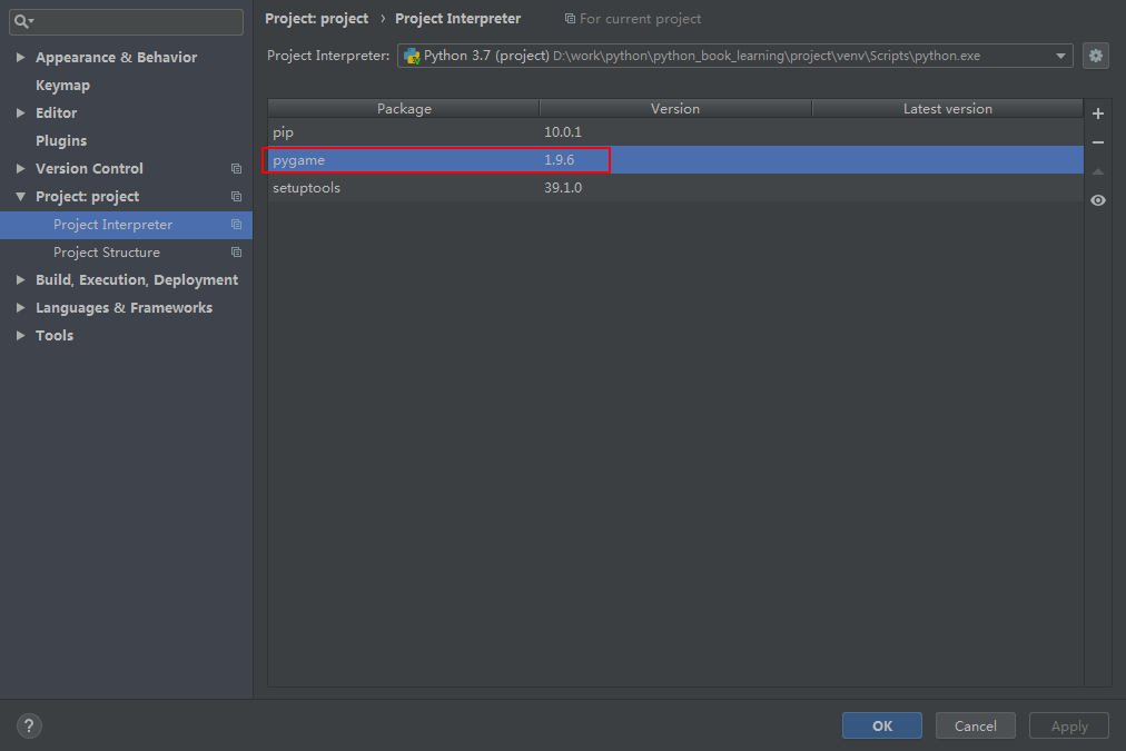 以上就是贪玩老鼠最近收集整理的关于windows下Pycharm中安装Pygame的全部内容,更多相关windows下Pycharm中安装Pygame内容请搜索靠谱客的其他文章。