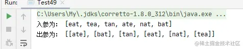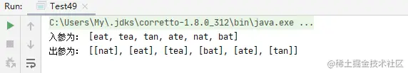 由上面的测试结果可以看出,出参肯定是错误的, eat和 tea肯定是字母异位词, 测试案例也是 LeetCode题中的示例1, 大家也可以对照一下