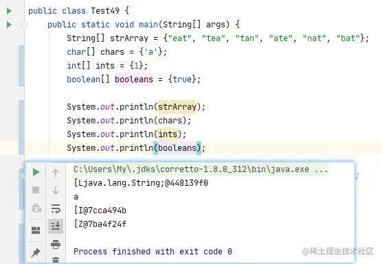 于是我对其进行了验证, 可以看到,我们将字符串转化为 char数组之后,它打印出来的就是当前字符串,说明了 java内部是对 char数组的 toString方法进行了重写的