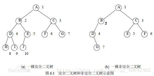 完全二叉树定义,若设二叉树的深度为h,除第 h 层外,其它各层 (1~h-1) 的结点数都达到最大个数,第 h 层所有的结点都连续集中在最左边,这就是完全二叉树。