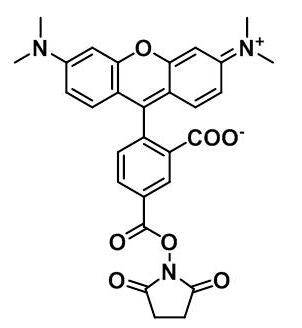 5-TAMRA NHS酯(5-羧基四甲基罗丹明)是一种明亮的橙色荧光染料,其激发非常适合532 nm或546 nm激光线。该染料由纯化的单一异构体5提供。5-TAMRA已广泛用于制备肽、蛋白质、核苷酸和