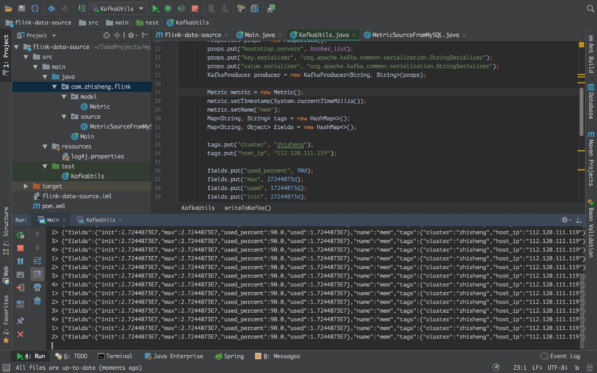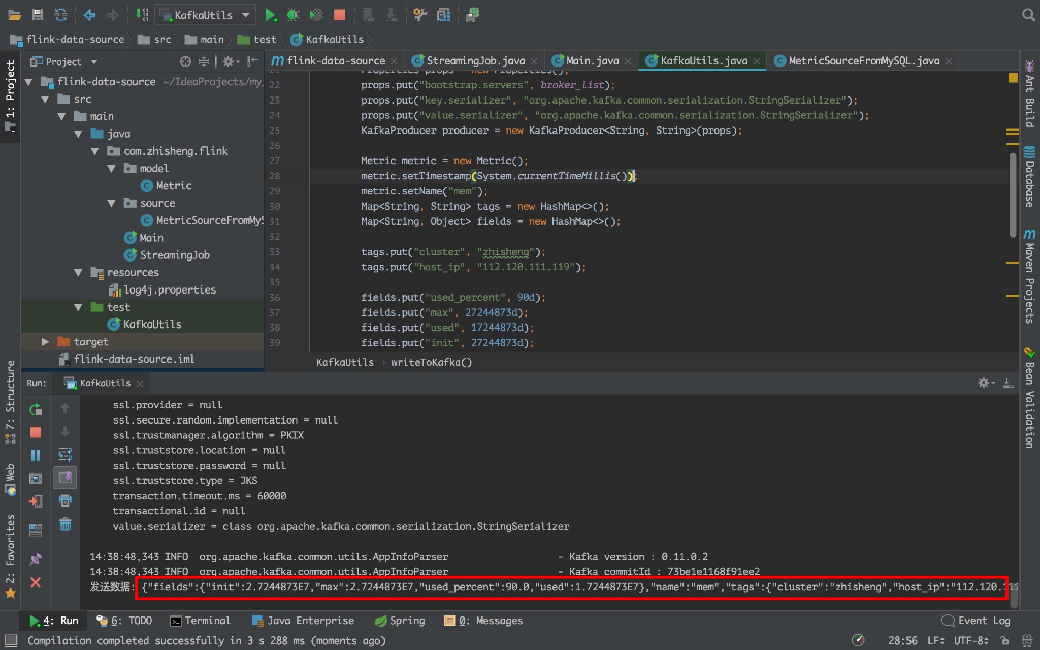 public static final String topic = "metric"; // kafka topic,Flink 程序中需要和这个统一