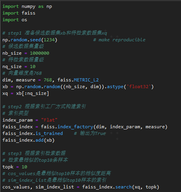 图4 基于faiss构建大规模检索任务的代码实例