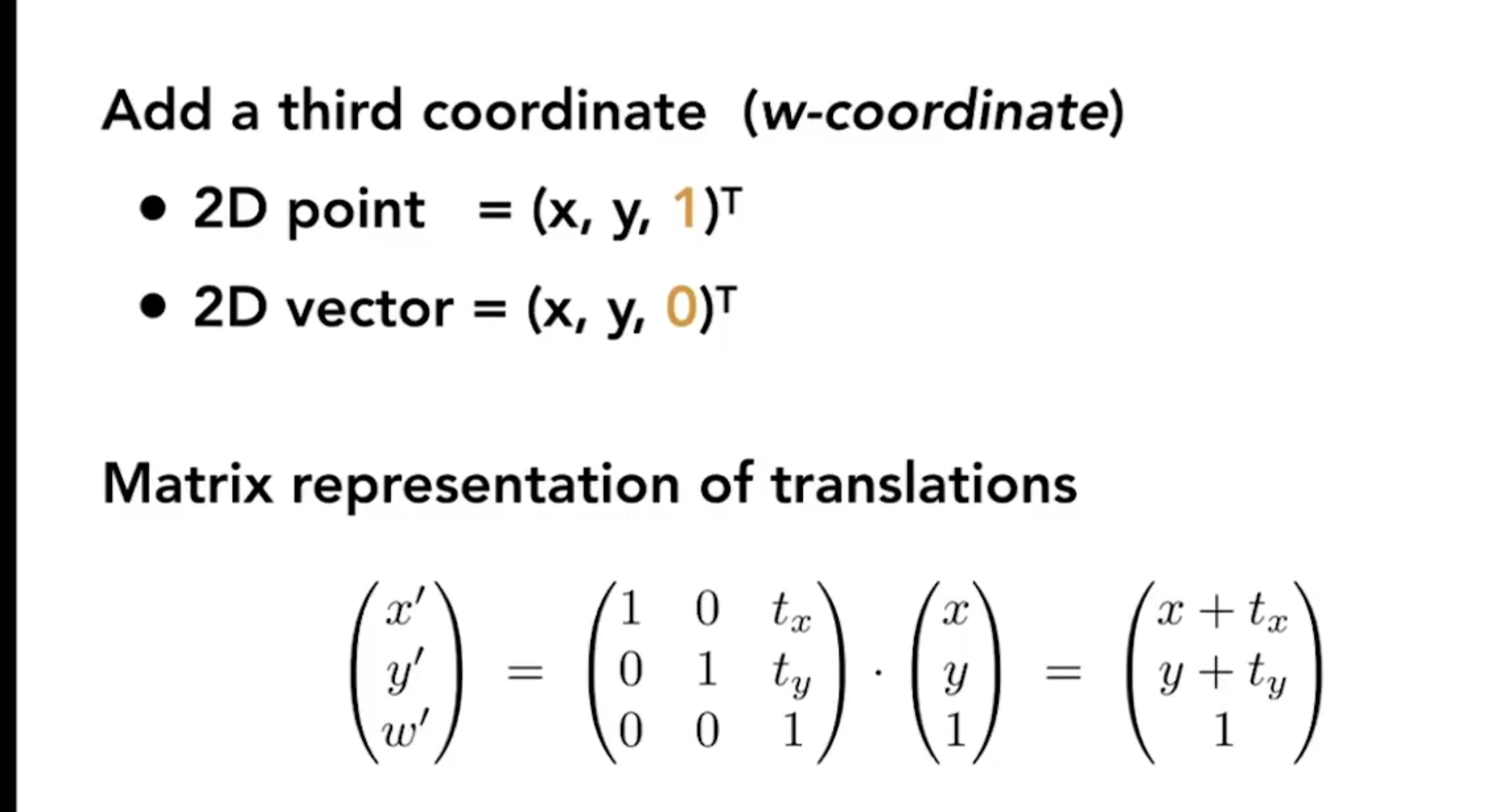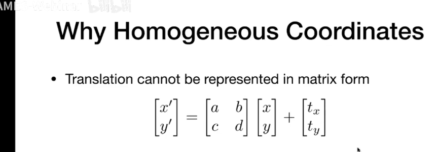 为了解决这个问题,提出了一种新的表示方式,齐次坐标。
