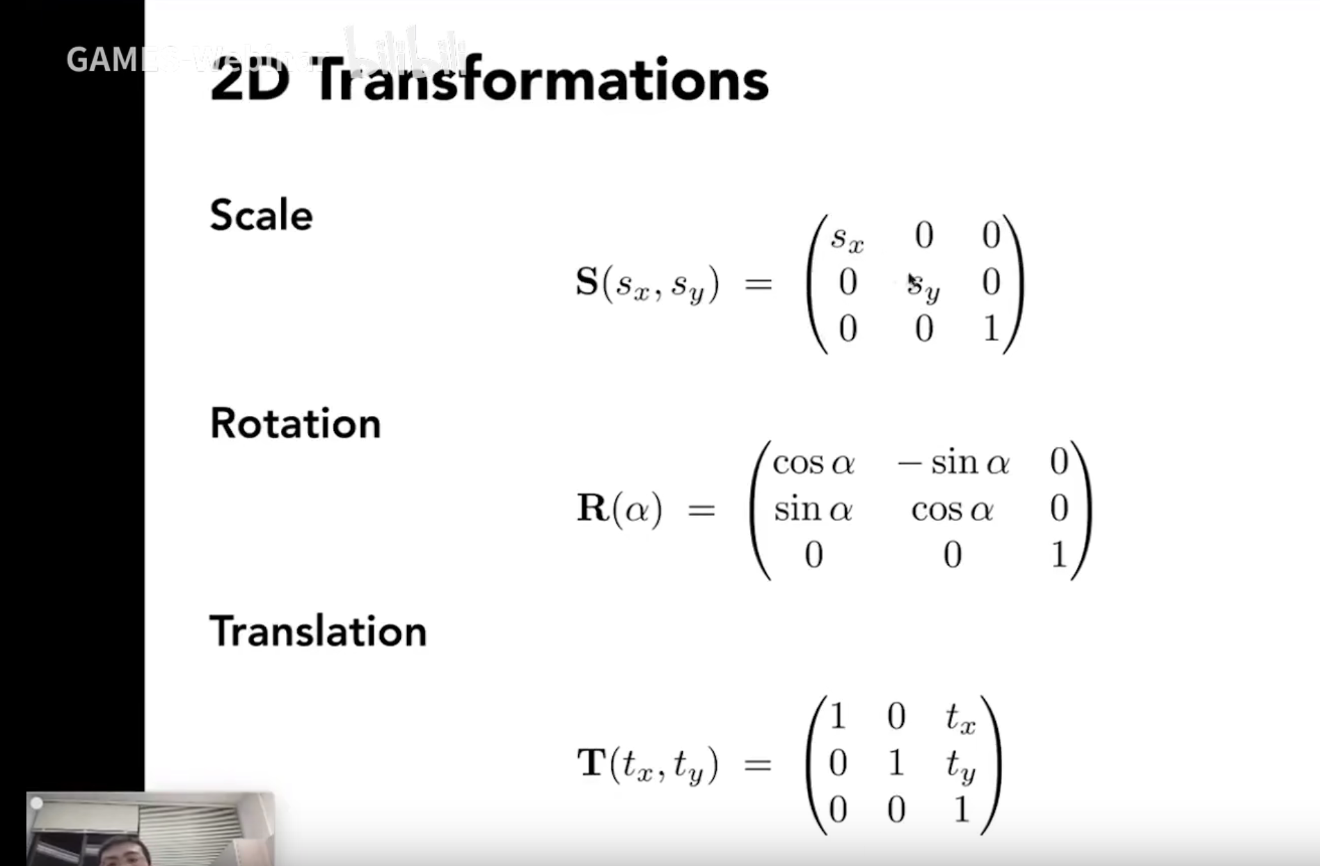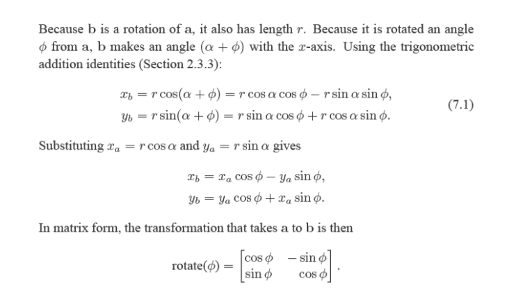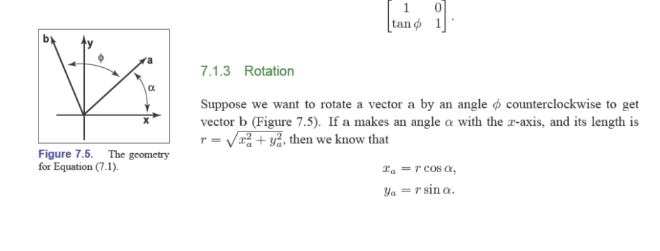 当我们使用2*2的举证来表示平移的时候,我们所使用的位置是第一行第二列(填入a)和第二行第一列(填如b),但是此时出现了一个问题:如果我们直接将平移的距离填上,会导致此时x变为x+ay,y变为y+bx,与我们所求不一致,我们所需要的是x加上某一个常数和y加上某一个常数,一个更加通用的形式,如果我们想要达到这个效果的话我们就需要在后面再加上一个向量。