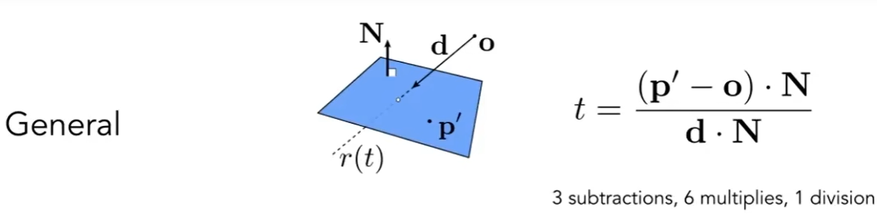 1.2 计算平面上的交点, 根据光线方程和平面方程, 解出t值.