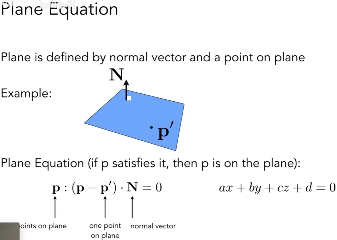 p:(p-p’)点乘N=0 , 符合这个表达式的集合p就是拥有法线N的平面