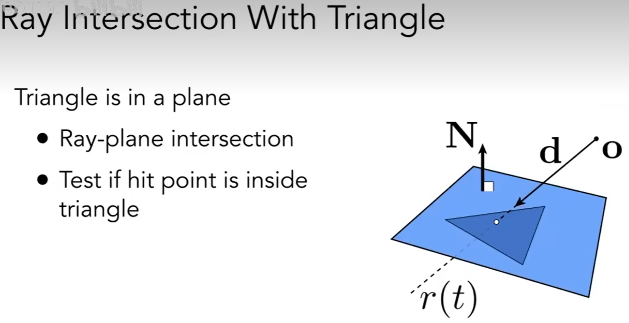 给定一个三角形面, 一个光线, 要么产生一个交点, 要么没有交点.