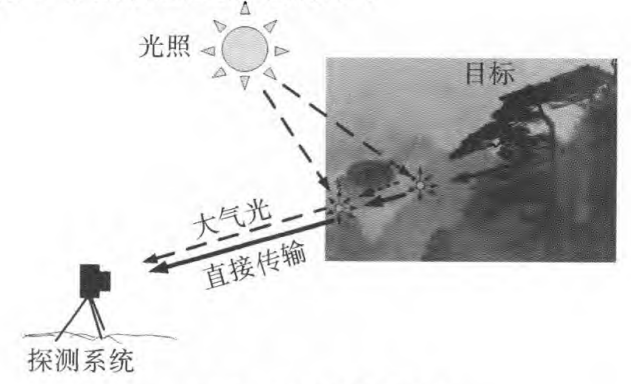 在雾天拍照时,探测器接收到的光源会被雾干扰,此时的收集到的光源主要来自两部分