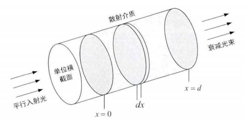 反射光在传播的过程中,随着传输距离的增加光强逐渐衰减,假设光束具有单位横截面积,从