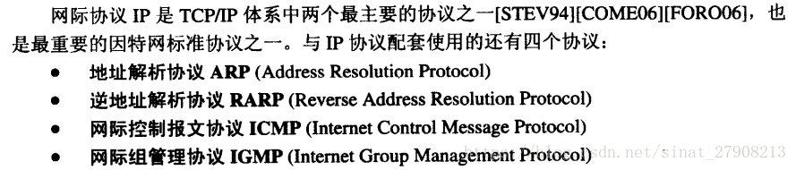 在这里,ARP和RARP画在下面,因为IP经常要使用这两个协议。ICMP和IGMP画在上面,因为它们要使用IP协议。