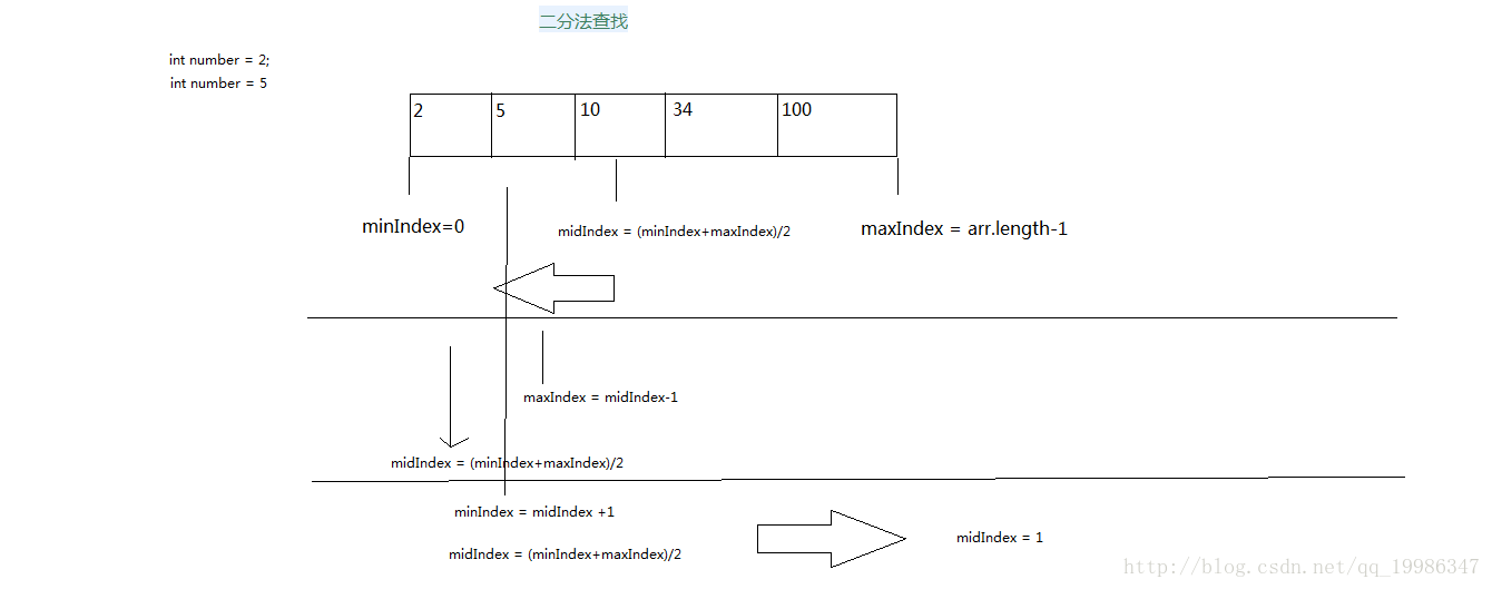 * 二分法查找:从一个数组中查找一个指定的数,(并返回其索引值)前提:数组必须排好序!