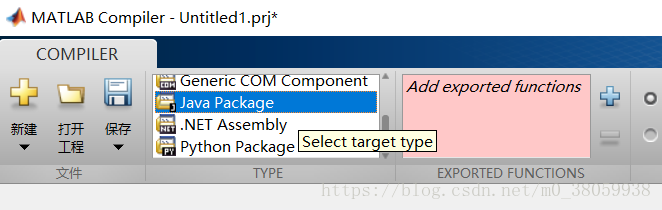 选择Java Package,点击右边的蓝色加号选择你刚刚写好的m文件: