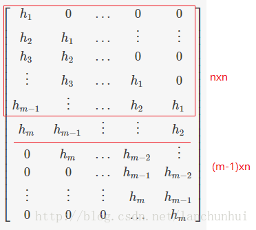 由左边的 Toeplize 矩阵可知,Toeplize 矩阵不必是方阵;下面来看该矩阵的维度信息,如下图所示: