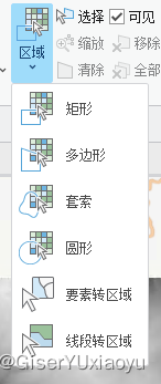选取的绘制,支持自定义形状绘制,也支持要素、线段转为选区。