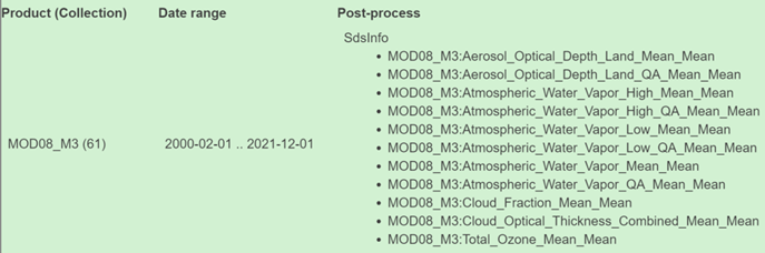 数据类型:MOD08_M3(区别MYD08_M3:观测平台不同,MOD为Terra,MYD为Aqua)