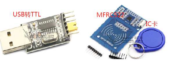 ①USB转TTL模块 ②MFRC522模块 ③S50/S70卡(IC卡/白卡)
